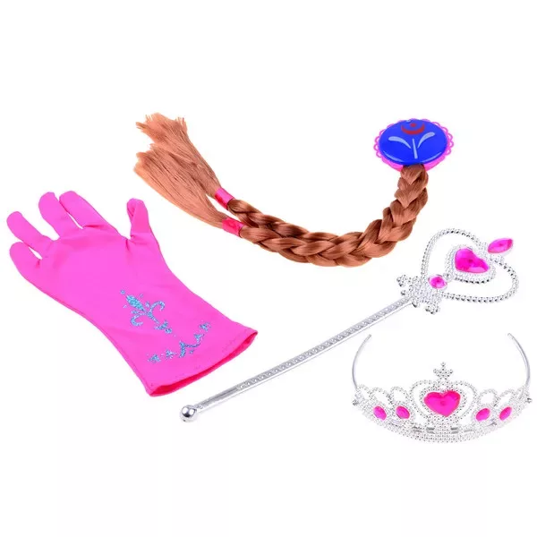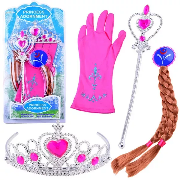 - Teljes készlet – 4 darabos csomag (hajcsat copffal, korona, jogar, kesztyű), azonnal viselhető.