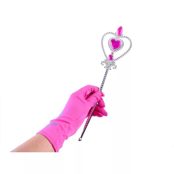 Varázsolj igazi mesebeli hercegnőt a kislányodból ezzel a komplett jelmez kiegészítő csomaggal! A szett mindent tartalmaz, amire szükség van a koronázáshoz: fonott hajcsatot, ragyogó koronát, csillogó jogart és selymes tapintású rózsaszín kesztyűt.