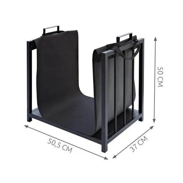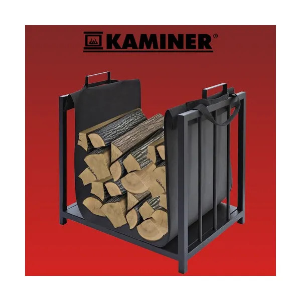A Kaminer 24628 2-az-1-ben tűzifaállvány és hordtáska stílusos, praktikus kiegészítő minden kandallóhoz vagy kályhához. Porfestett acél váza ellenáll az időjárásnak, így akár kültéren is használható, a levehető textiltáska pedig tisztán és könnyedén szállíthatóvá teszi a fát.