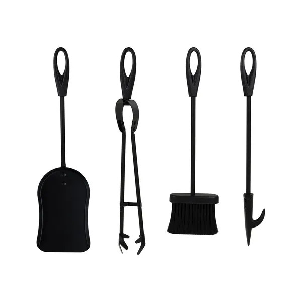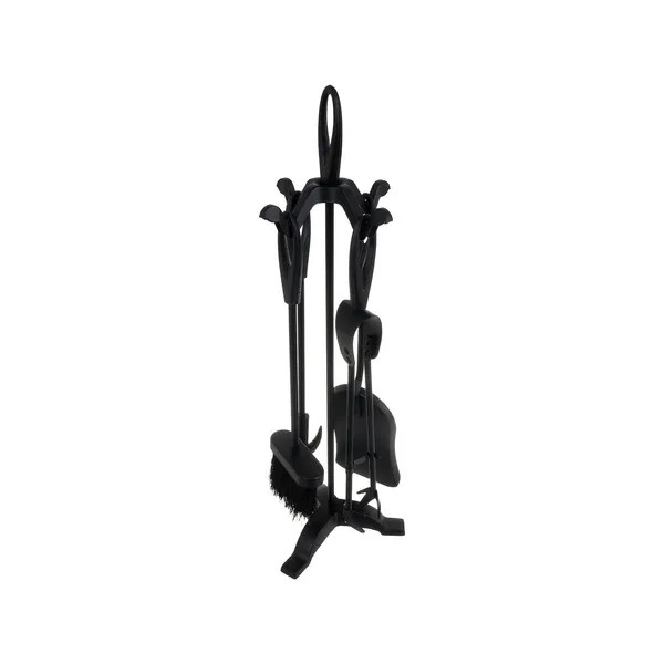 A 50 cm magas állvány három erős vaslábon áll, így még akkor is stabil, amikor a 42 cm-es piszkavasat, seprűt, lapátot vagy fogót használja izzó parázs mellett. A kerek, ergonomikus markolatok biztos fogást nyújtanak, a kókuszrostból készült sűrű seprűfej pedig kíméletesen, mégis hatékonyan távolítja el a hamut.