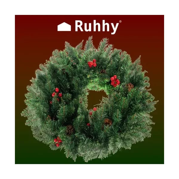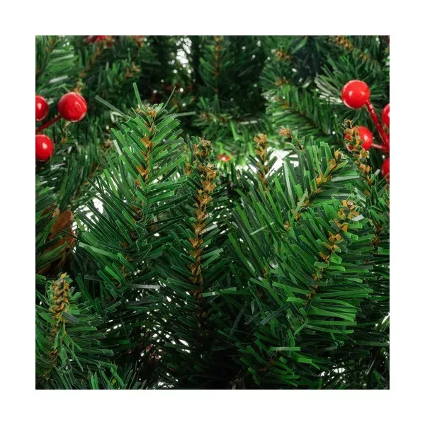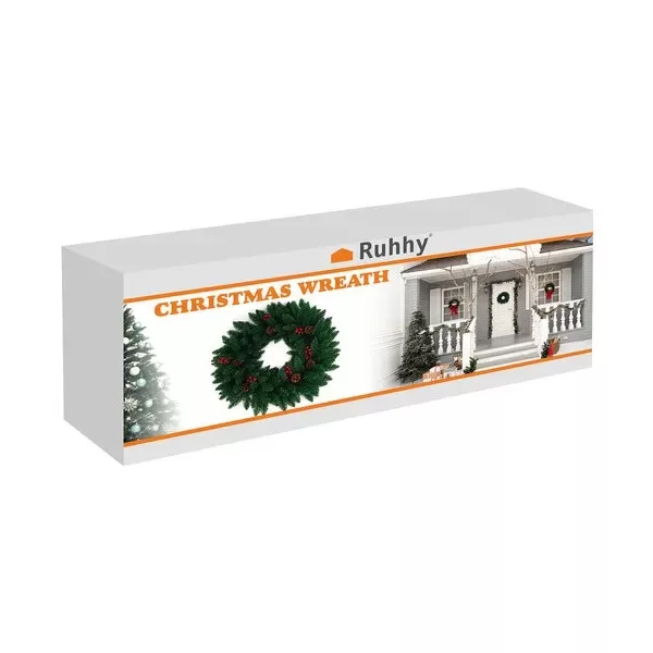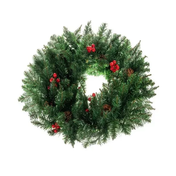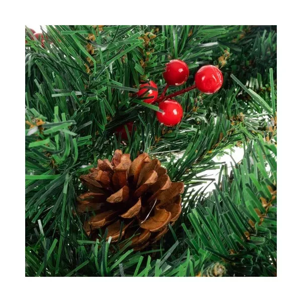Dobd fel az ünnepi időszakot ezzel a lenyűgözően sűrű, 60 cm-es karácsonyi koszorúval, amely természetes hatású PVC tűlevelekkel, tobozokkal és piros bogyókkal díszített.