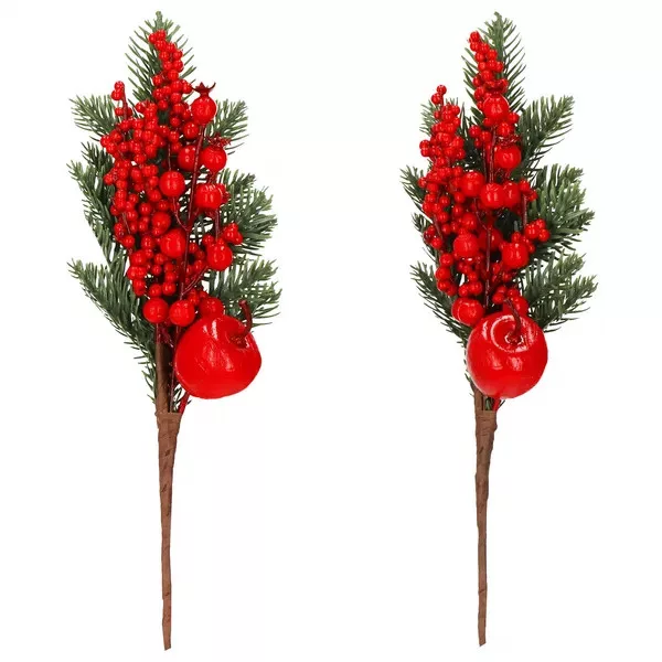 Otthonod ünnepi hangulatát pillanatok alatt megteremtheted ezzel a kézzel kötött, 32 cm magas karácsonyi műfenyő ágcsokorral. A realisztikus tűlevelek és a piros gyümölcsdíszek természetes megjelenést nyújtanak, miközben nem hullik tűlevél és nem igényel gondozást.