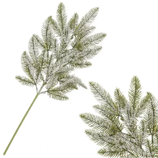 Varázsolj meghitt, téli hangulatot otthonodba ezzel a természetes hatású, hófödte dekorággal. A részletes kidolgozású, zöld műfenyőágakat finom fehér pelyhek borítják, mintha frissen hullott hó fújta volna be.
