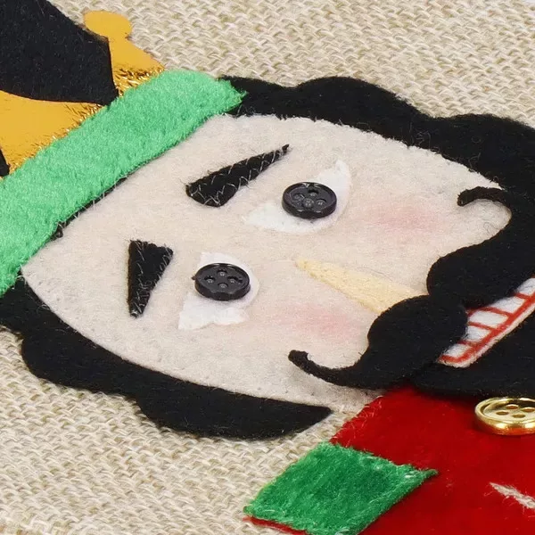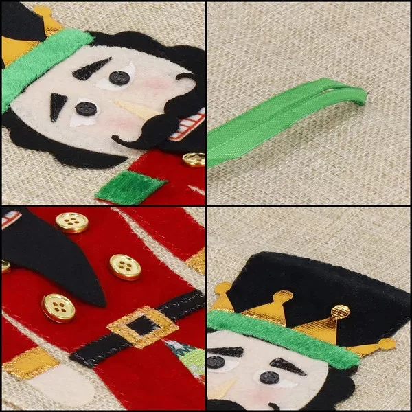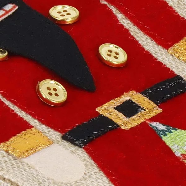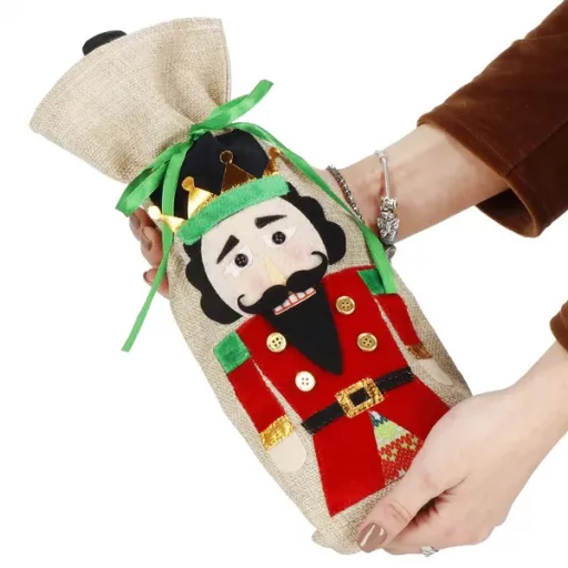 Tedd különlegessé a bor vagy pezsgő ajándékozását ezzel a hangulatos, diótörő mintás palackhuzattal! A dekoratív zsák 50% len és 50% poliészter keverékéből készül, így egyszerre természetes tapintású és strapabíró. A zöld szalaggal könnyedén összehúzható, így a palack biztonságosan a helyén marad, miközben elegáns megjelenést biztosít az ünnepi asztalon.