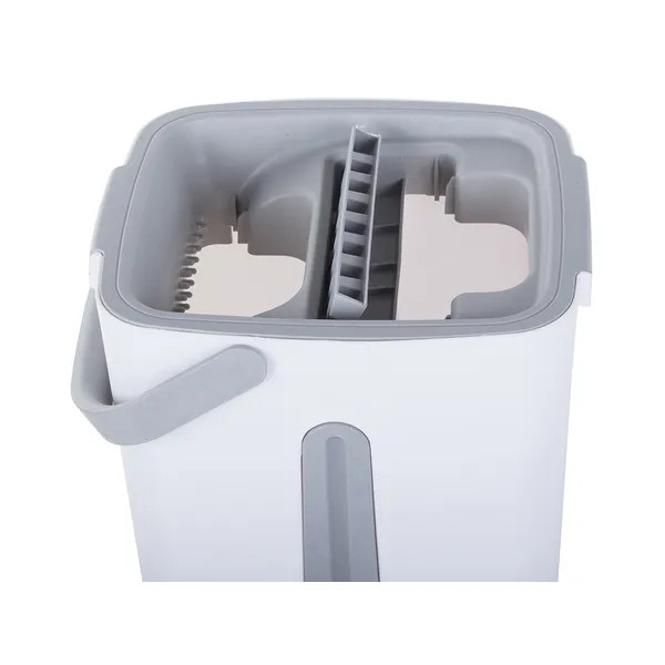 A lapos, forgó fejű felmosó két rekeszes, csavarókosaras vödörrel megkíméli a derekat és a kezeket a vízzel való érintkezéstől, miközben felgyorsítja a takarítást.