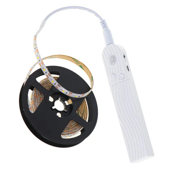 2 méteres, meleg fehér fényű LED szalag mozgás- és fényérzékelővel automatikusan bekapcsol, amikor közelítesz, így biztonságos, energiatakarékos és kényelmes megoldás a sötét helyek megvilágítására. A vezeték nélküli, 4×AAA elemes működés teljes szabadságot nyújt, USB-kábellel pedig folyamatos áramforrásról is használható.