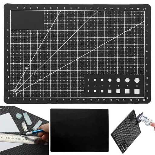3 mm vastagságának és jól látható rácsozásának köszönhetően pontos szögvágásokat végezhet, míg a csúszásgátló fekete felület stabil munkateret biztosít.