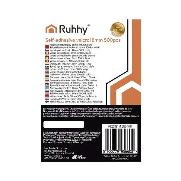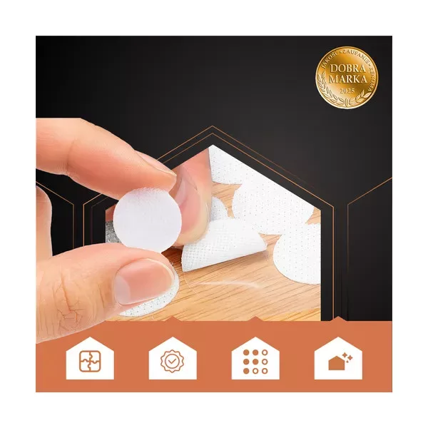 Praktikus, öntapadó tépőzár korongok 18 mm-es átmérővel, 500 darabos (250 horog + 250 hurok) kiszerelésben. A nagy tapadószilárdságú ragasztórétegnek köszönhetően gyorsan és fúrás nélkül rögzíthet dekorációt, kábeleket, textíliákat vagy kisebb tárgyakat akár 180 g súlyig műanyagon, üvegen, fán és fémfelületen is.