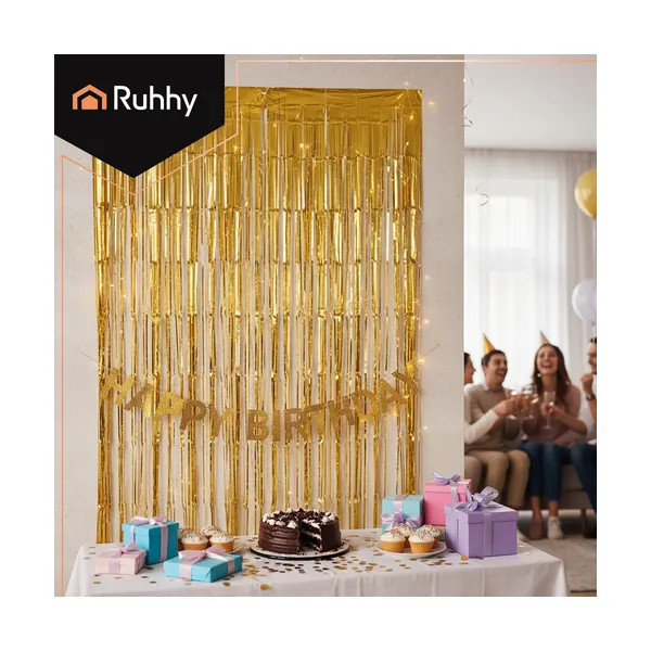 Az öntapadós arany fóliafüggöny azonnal lenyűgöző csillogást kölcsönöz bármely belső térnek, legyen szó születésnapi buliról, lánybúcsúról, szilveszterről vagy fotózási háttérről.