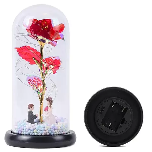 - Páratlan látvány: a 21,5 cm magas, 9 cm széles üvegbúra alatt a rózsát RGB LED világítja meg, hogy minden szögből ragyogjon.