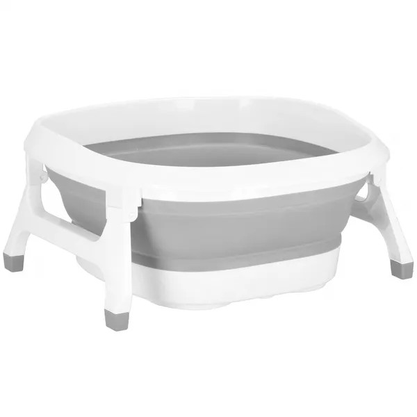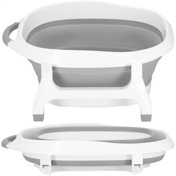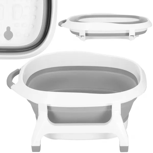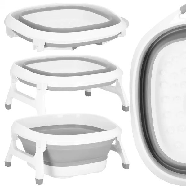 Végre helytakarékos megoldás a napi lábápoláshoz! Az összecsukható, szürke-fehér lavór strapabíró műanyagból és rugalmas szilikon betétekből készül, így könnyű, mégis stabil. A kihajtható lábak biztonságosan a padlón tartják, a gumírozott leeresztődugóval pedig pillanatok alatt kiöntheted a vizet. A lavór alján elhelyezett masszírozó bütykök gyengéd stimulációt nyújtanak, serkentik a vérkeringést, és ellazítják a fáradt talpakat.