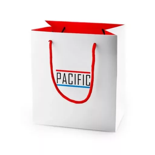 Készülj a tökéletes ajándékozásra a Pacific fehér ajándéktasakkal, amely prémium minőségű, vastag papírból készült, elegáns fekete logóval.