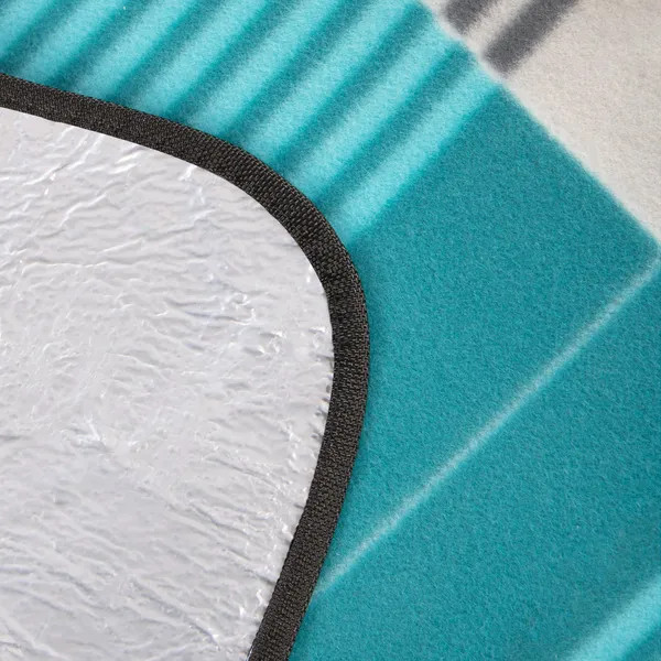 - Vízálló alsóréteg: alumínium fólia védi a takarót a nedves fűtől, homoktól és hőtükröző tulajdonsága révén melegen tart.
