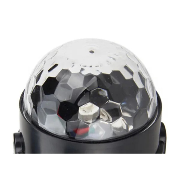 A kompakt, 10 × 9 cm-es RGB LED diszkógömb mindössze 3 W teljesítmény mellett varázsol klubhangulatot otthonodba vagy kisebb vendéglátóhelyre. A beépített motor 360°-ban forgatja a három erős, piros, zöld és kék LED-et, míg a hangérzékelő a zene ütemére szabályozza a villódzást.