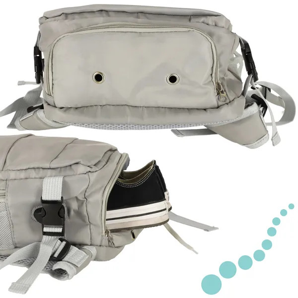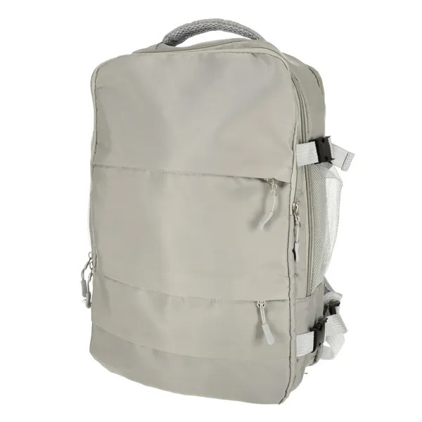 Ez a szürke utazó hátizsák tökéletes méretű, hogy kézipoggyászként vigyék repülőn. Külső összehúzó pántokkal rendelkezik a hátizsák térfogatának csökkentésére. Rengeteg zsebbel van ellátva az összes alapvető dolognak, mint a ruházat, laptop, cipő és vízpalack. Van egy nyílása USB kábelnek, ami könnyűvé teszi a telefon töltését powerbankról.