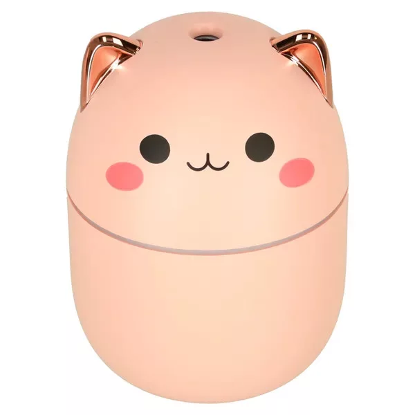 A rózsaszín macskás ultrahangos párásító és illóolaj-diffúzor egyesíti a hatékony párásítást a bájos dizájnnal. 250 ml-es tartálya órákon át működik, miközben a váltakozó RGB fény lágy hangulatot teremt a hálószobában, nappaliban vagy az irodában.