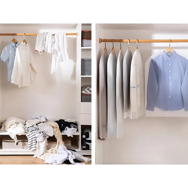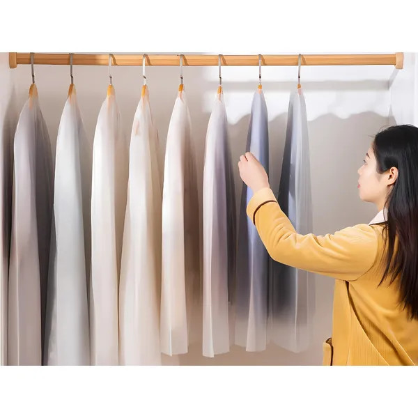 Védd meg öltönyeidet, kabátjaidat és alkalmi ruháidat a portól, nedvességtől és gyűrődéstől ezzel a praktikus, 60×140 cm-es ruha- és kosztümhuzattal. A huzat áttetsző, szagtalan PEVA anyagból készül, így gyorsan átláthatod, mi van benne, mégis megbízható védelmet nyújt tároláskor és utazás közben.