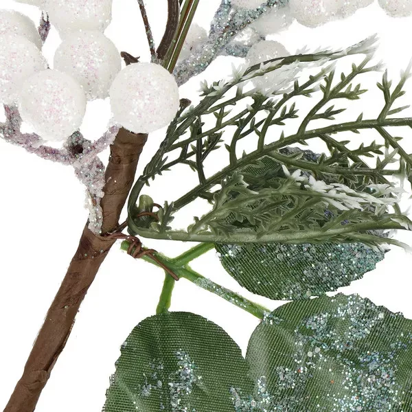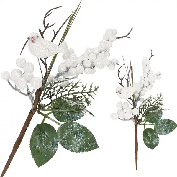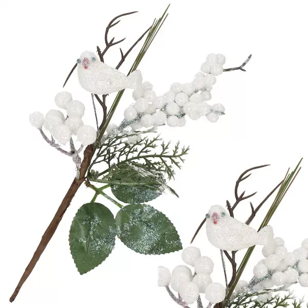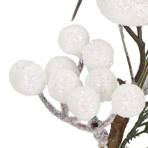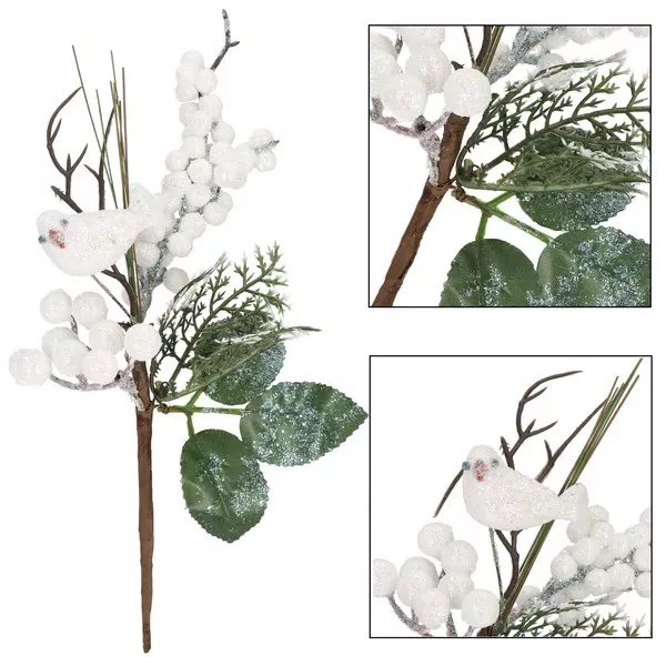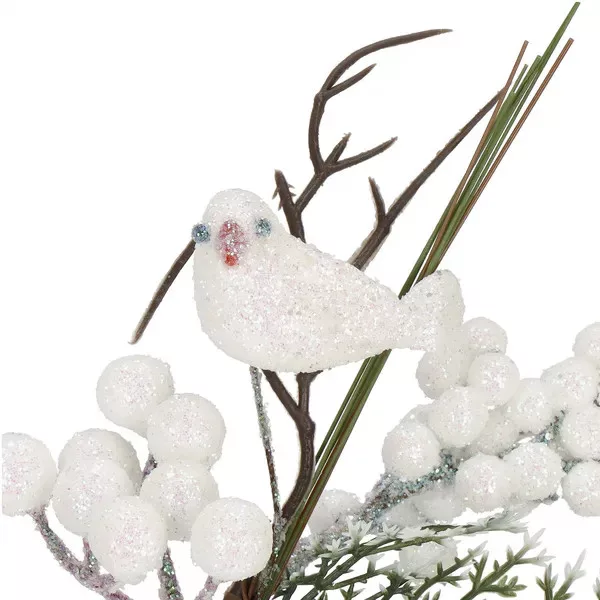 Varázsolj meghitt, téli hangulatot otthonodba ezzel a részletgazdag, 25,5 cm-es dekorágacskával! A finoman csillogó madárka, a hófehér bogyók és az élethű zöld levelek természetes hatást keltenek, miközben nem hullanak, nem fakulnak.