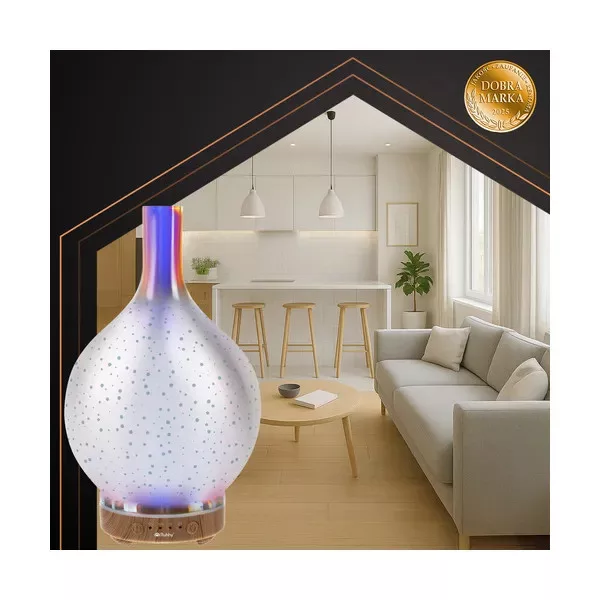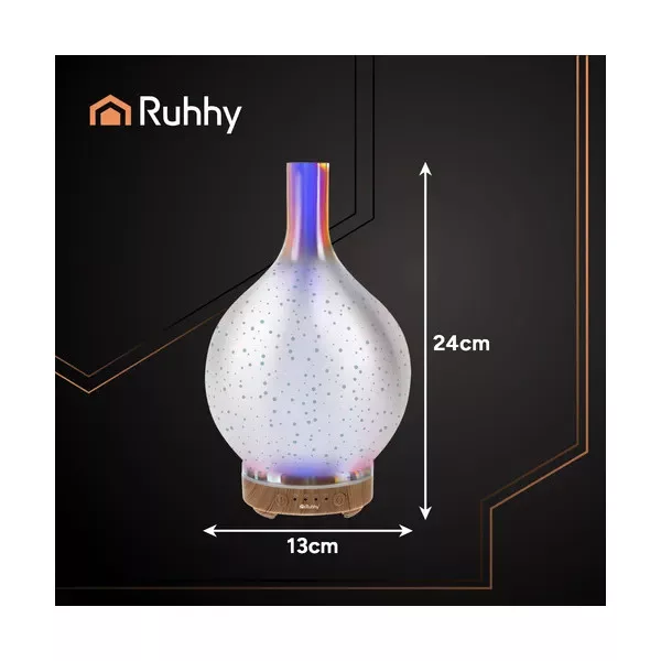 Élvezd az ideális páratartalmat és a finom illatokat a Ruhhy ultrahangos aroma diffúzorával! A 200 ml-es tartály finom, hűvös párát bocsát ki, miközben a 14 különböző árnyalatban ragyogó LED fény megteremti a hangulatot. Csak cseppents kedvenc illóolajodból, állítsd be az időzítőt, és máris elmerülhetsz a pihentető légkörben.