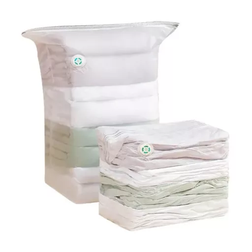 - Akár 80 % helymegtakarítás – a levegő kiszívása után a zsák tartalma lényegesen kisebbé válik, így több szabad hely marad.