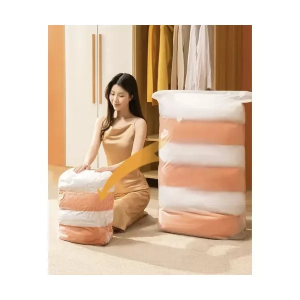 Nagy méretű, 80×100 cm-es vákuumos tárolózsák, amellyel pillanatok alatt összezsugoríthatod ruháidat, ágyneműdet vagy törölközőidet, így akár 80 %-kal kevesebb helyet foglalnak a szekrényben, bőröndben vagy a padláson.