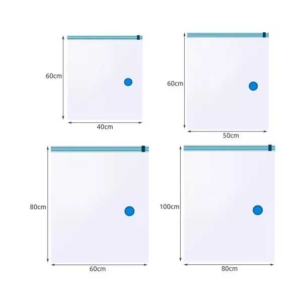 Olyan helytakarékos megoldást keresel, amellyel biztonságosan tárolhatod szezonális ruháidat, ágyneműidet vagy utazáshoz pakolt holmijaidat? A 10 darabos vákuumos tárolózsák készlet levegőelszívás után akár 80 %-kal csökkenti a térfogatot, így értékes helyet szabadít fel a szekrényben, bőröndben vagy a padláson.