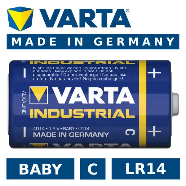 A Varta Industrial LR14/C (C-méret) alkáli elemet kifejezetten ipari és professzionális felhasználásra tervezték, ahol a hosszú üzemidő és a nagy kisütési teljesítmény alapkövetelmény. 7800 mAh kapacitásával és 1,5 V feszültségével ideális nagy energiaigényű eszközökhöz – például mérőműszerekhez, elemlámpákhoz, rádiókhoz vagy motoros játékokhoz.