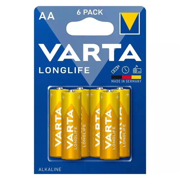 - 6 db Varta Longlife AA 1,5 V alkáli elem