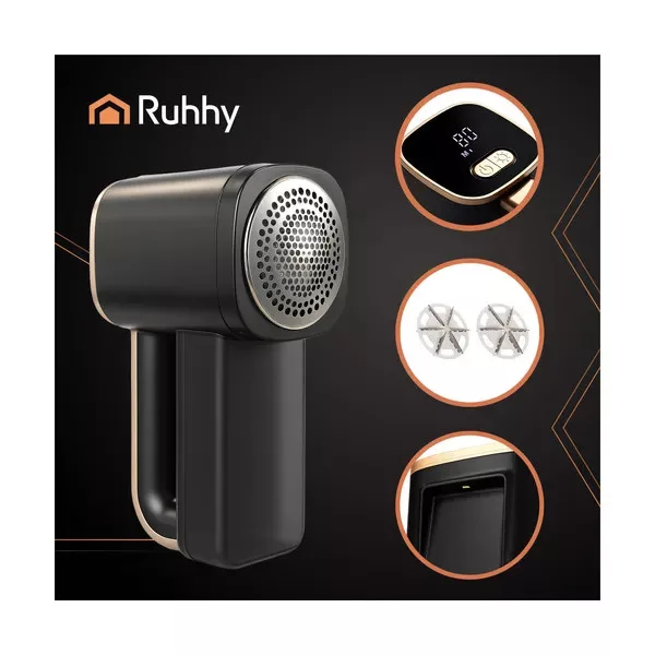 Az elegáns, fekete Ruhhy vezeték nélküli ruhabolyholó borotva új életet lehel pulóvereibe, takaróiba és kárpitjába. A 3 fokozatú, akár 7200 rpm fordulatú motor hatékonyan tünteti el a bolyhokat, miközben megőrzi a szövetek épségét. A beépített LED fény és a jól olvasható LCD kijelző gondoskodik a pontos munkáról még gyenge fényben is.