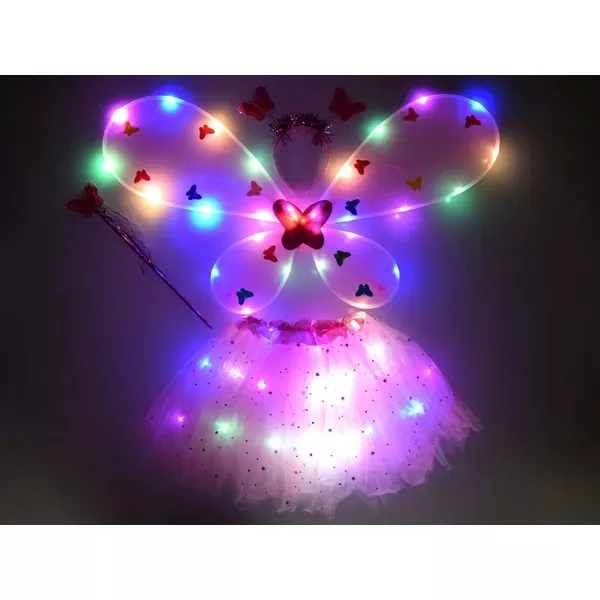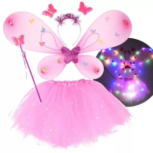 Szeretnéd, hogy gyermeked valóságos tündérként ragyogjon a farsangi bálon vagy a szülinapi zsúron? Ez a könnyű, világító rózsaszín jelmez három varázslatos elemből áll, melyekkel pillanatok alatt mesebeli hangulatot teremthettek.