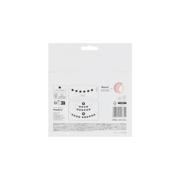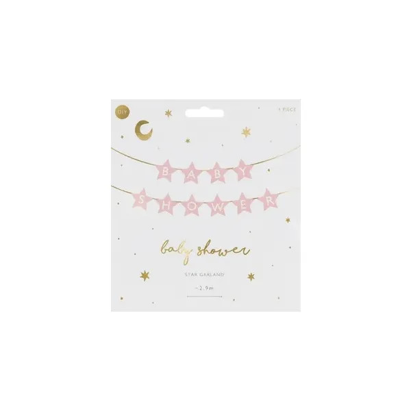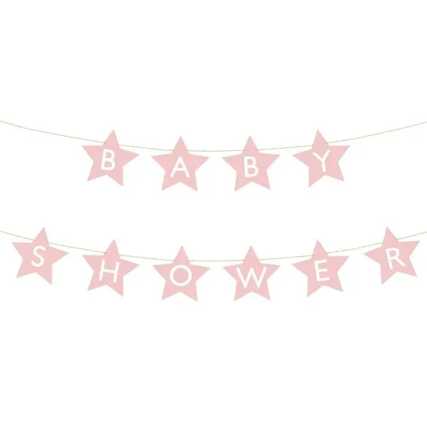 Azonnali babaváró hangulatot teremthetsz ezzel a világos rózsaszín, csillag formájú papír girlanddal. A „Baby Shower” feliratot hordozó dekoráció könnyű, mégis tartós papírból készült, így beltéren és fedett kültéren egyaránt használható. A mellékelt kb. 3 m-es zsinórnak köszönhetően gyorsan felakaszthatod falra, asztal elé vagy fotóháttérként.